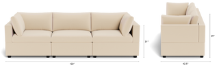 Corner Box 2 (2): 43" x 17" x 7"Armless Box (1): 43.5" x 37.5" x 14.25" |