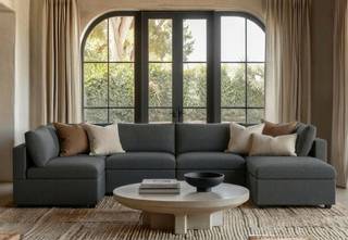 A clean, tailored modular silhouette with structured box cushions and deep seating. Designed for a considered, designed feel with flexible layouts. Choose your configuration and performance fabric.