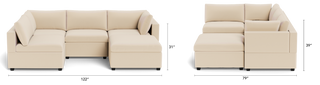 Corner Box 2 (2): 43" x 17" x 7"Armless Box (2): 43.5" x 37.5" x 14.25" |